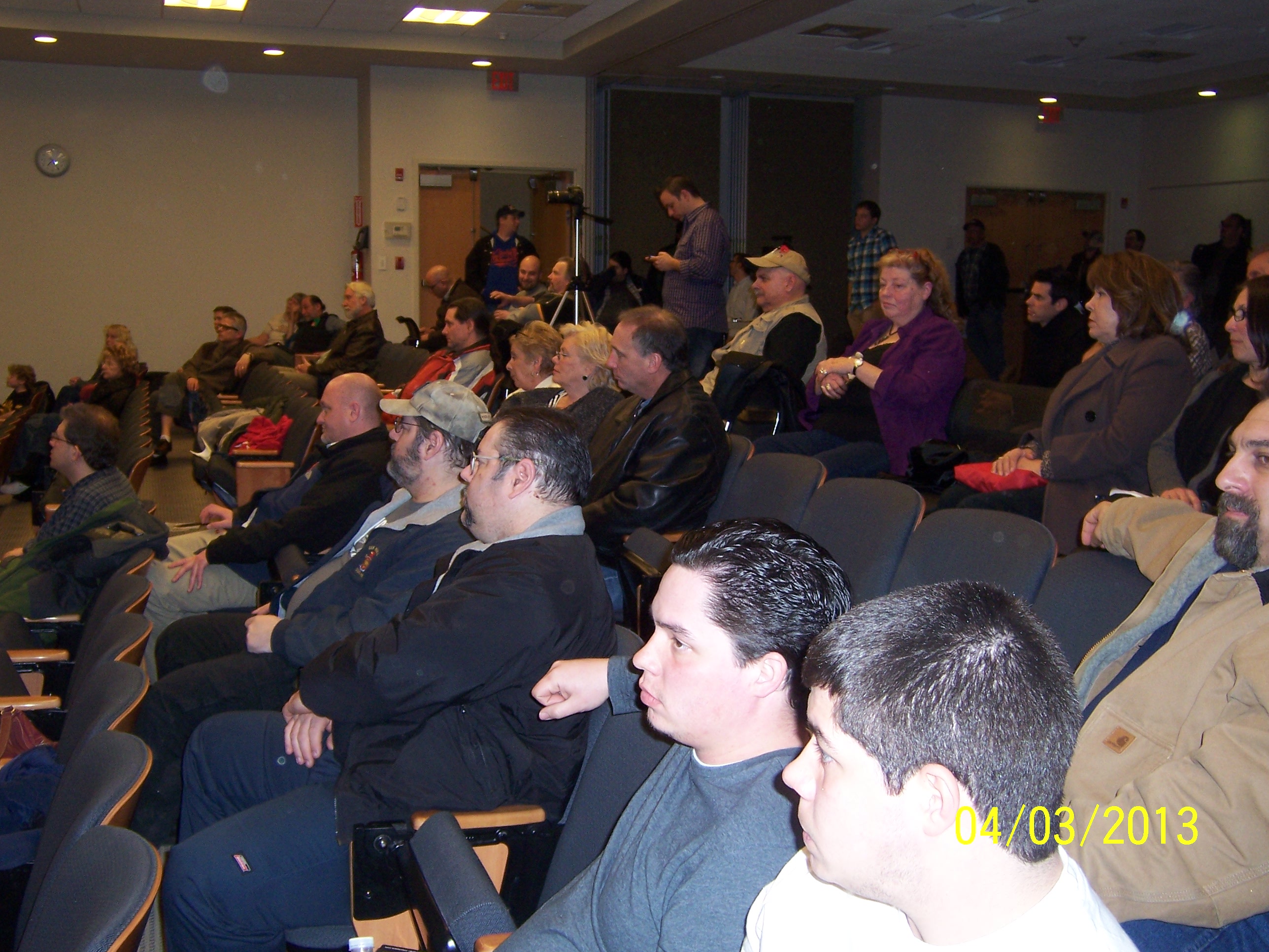 What happened at this Town Hall Meeting was that a room full of very passionate people turned the tables and stepped up on the stage one by one before a backdrop of empty chairs with the missing legislators names listed and became part of a video filmed by Danny Panzella of truthsquad.tv.  This night became a night of impassioned pleas, anger, frustration, examples, reasoning, and justice for some of the 80 plus citizens that took the time from their own lives to find out answers to their questions only to be let down once again by those they voted to legislate with the Constitution.  Many agreed that the only way to get justice was to vote these legislators out and run for office themselves.  Many candidates who stepped up to the plate to run themselves, stepped up to the stage to inspire others to do the same including Gigi Bowman running against one of the Republican voters of the NY Safe Act, Carl Marcellino. One candidate for Suffolk County Sheriff, Michael Houze, read a form letter sent by Republican and Conservative  Assemblyman, Chad Lupinacci which drew moans from the crowd. Also speaking  was Congressional Candidate Michael McDermott running against Steve Israel in 2014.